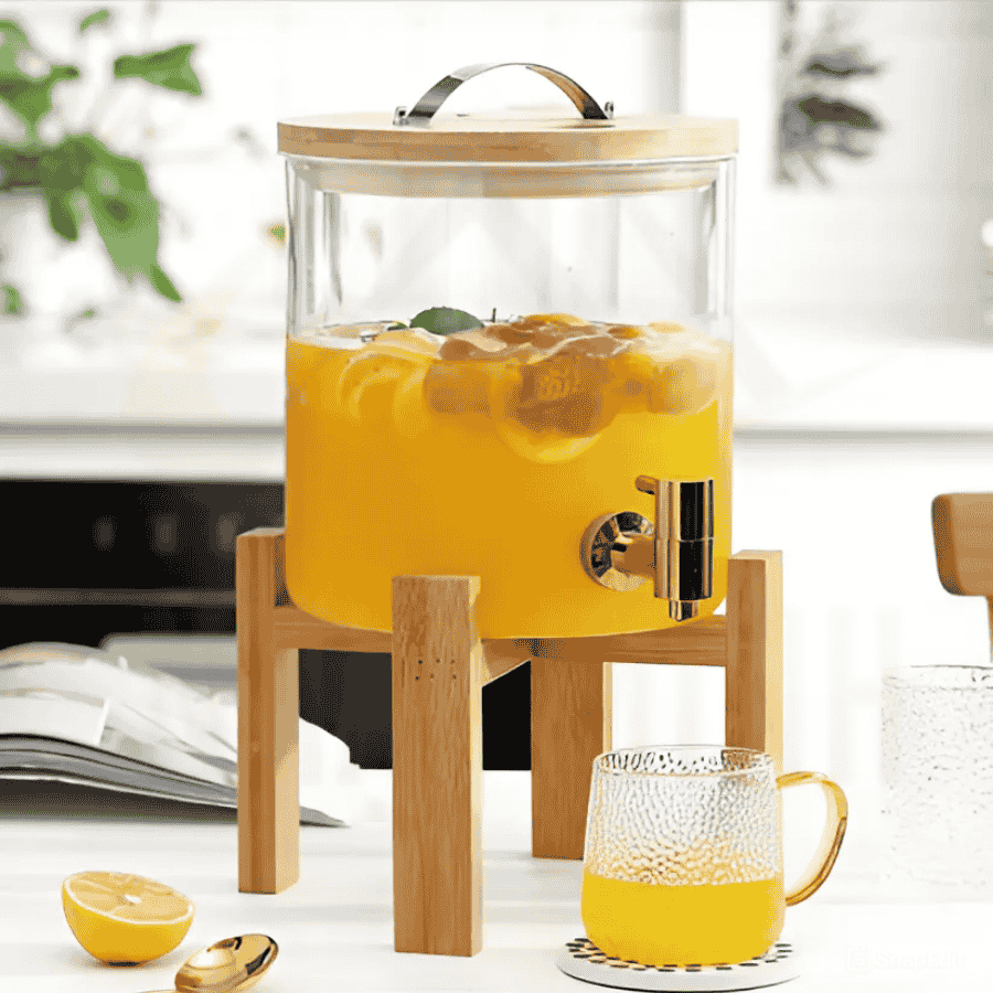 Bình nước trái cây chân gỗ 5 lít là sản phẩm phù hợp cho các quầy buffet, nhà hàng, khách sạn, quán cà phê hoặc sử dụng trong gia đình. Thiết kế hiện đại, tiện dụng, chất liệu an toàn và dễ dàng vệ sinh.